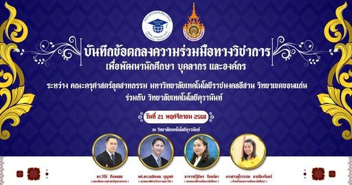 วันที่ 21 พ.ย. 2568 วิทยาลัยเทคโนโลยีคุวานันท์ ลงนามบันทึกความร่วมมือทางวิชาการ (MOU) กับ คณะครุศาส