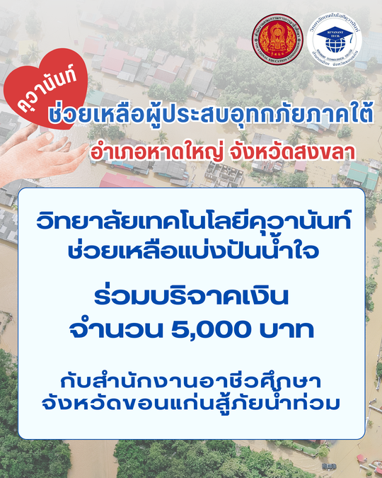 วิทยาลัยเทคโนโลยีคุวานันท์ ร่วมกับ สำนักงานอาชีวศึกษาจังหวัดขอนแก่น ร่วมส่งกำลังใจและยื่นมือช่วยเหลื