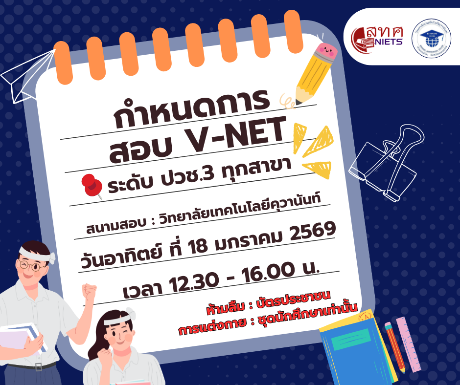 กำหนดการ ทดสอบ “V-NET” ของนักเรียน ปวช.3 วิทยาลัยเทคโนโลยีคุวานันท์ วันอาทิตย์ที่ 18 มกราคม 2569 “ช่