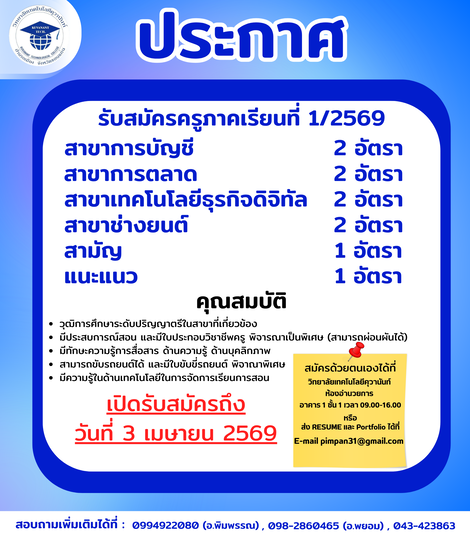ประกาศรับสมัครครูประจำปีการศึกษา 2569
