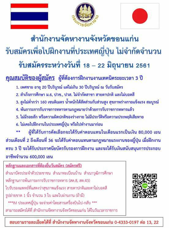 รับสมัครงาน พื่อไปฝึกงานที่ประเทศญี่ปุ่น ระหว่างวันที่ 18-22 มิถุนายน 2561