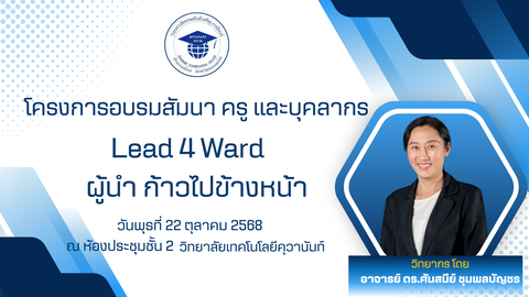 วันที่ 22 ตุลาคม 2568 วิทยาลัยเทคโนโลยีคุวานันท์ ได้จัดโครงการอบรมสัมนา ครู และบุคลากร หัวข้อ "Lead